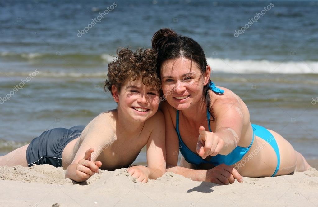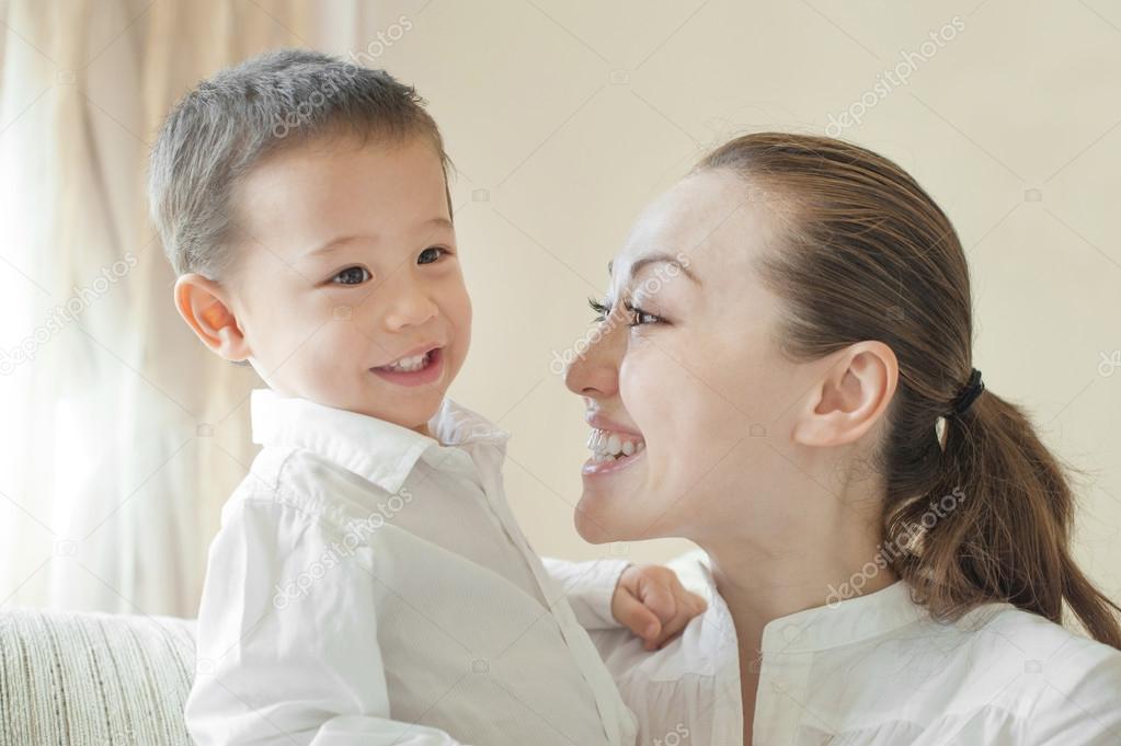 Heiße asiatische Mutter mit Sohn