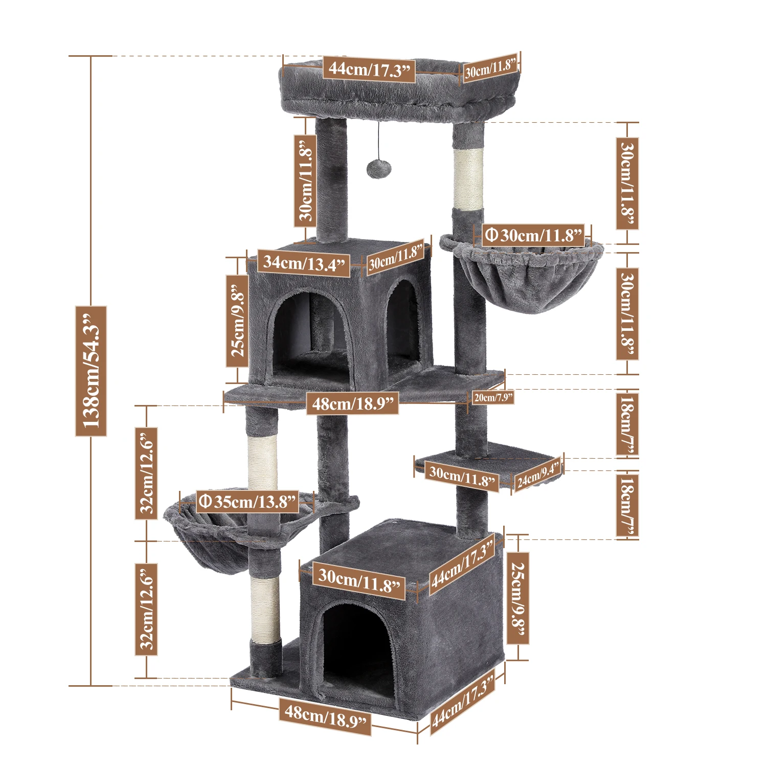 Height 138CM Cat Tree Tower Double Condo Large Perch Hummock Natural Sisal Scratching Posts for Kitten Multi-Level Tower Climber - Купить с бесплатной доставкой