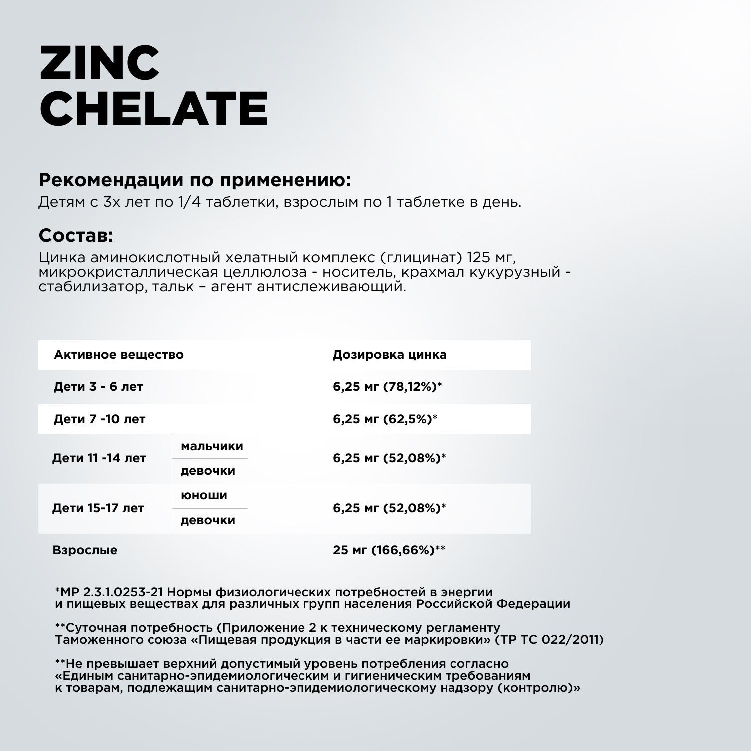 Хелат цинка состав