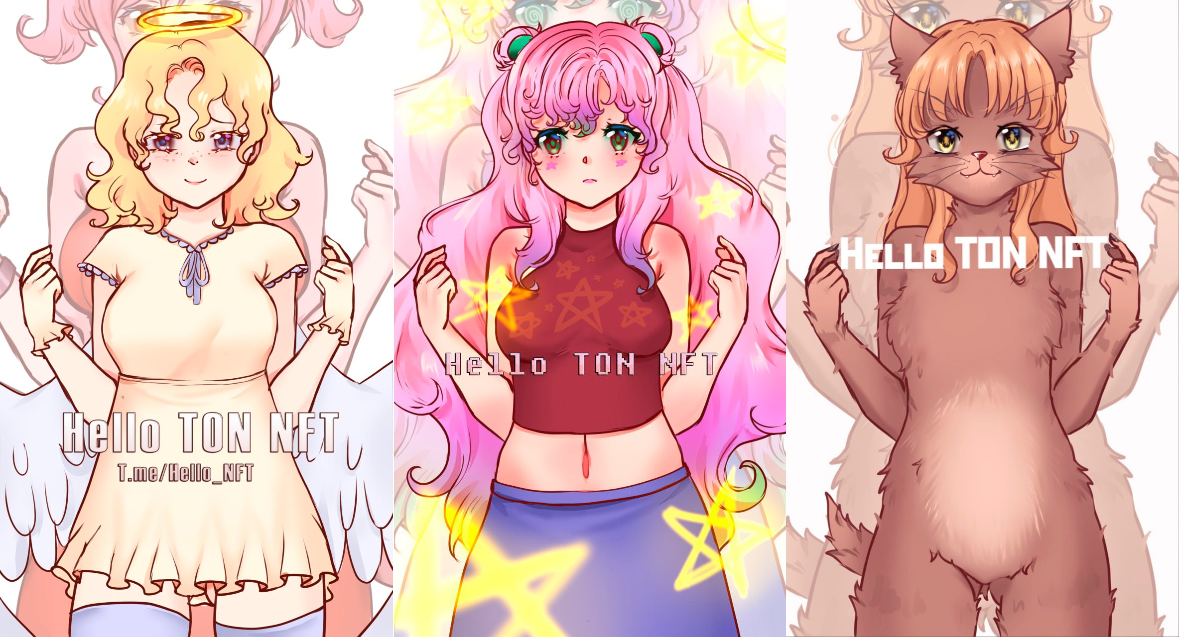 Многие истории девушек будут взаимосвязаны и, несмотря на очень разные стили, они находятся в одной вселенной Hello TON NFT.