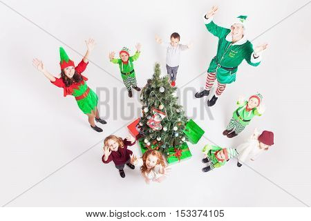 Three little children dressed in santa claus helpers costume dancing happy on christmas eve time . Image Editor Save Comp . Similar Illustrations See All . Elf . Cartoon santa claus helpers, dwarf christmas vector fun elves characters isolated . Elf and helper, christmas dwarf character illustration;