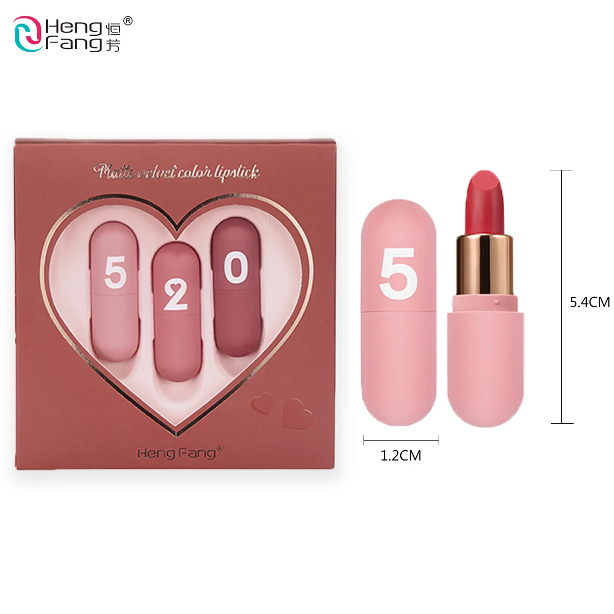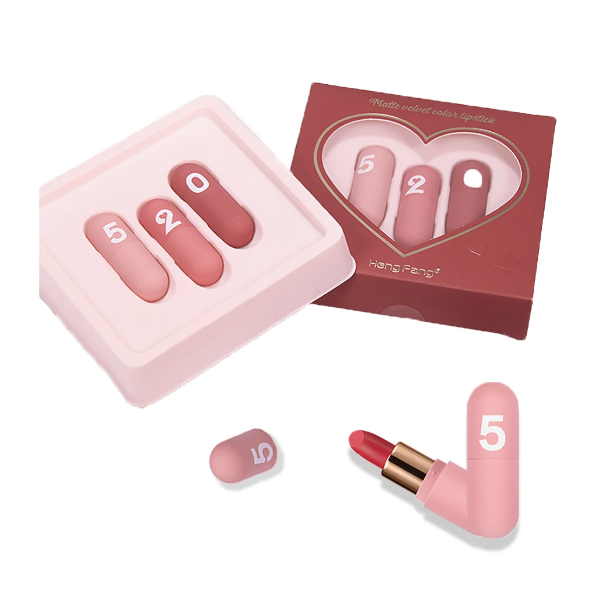"Hengfang Dropshipping Matte Velvet Color Lipsticks 3pcs/set Mini Capsule Lipsticks Set Heart Shape Cosmetic Makeup Gift #H144" * Buy Now Just For 9$