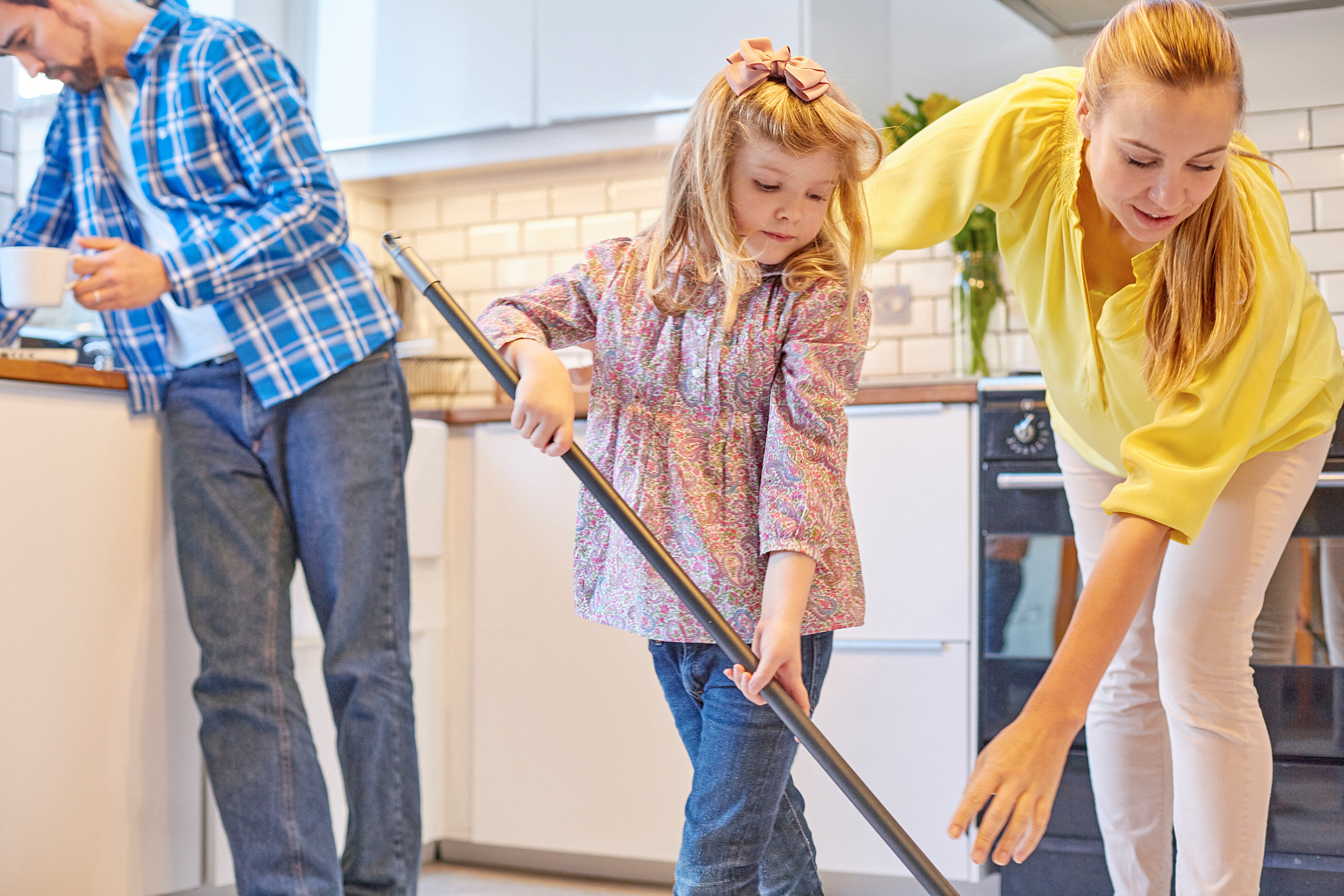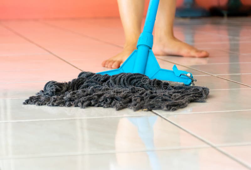 Her sister mop the floor