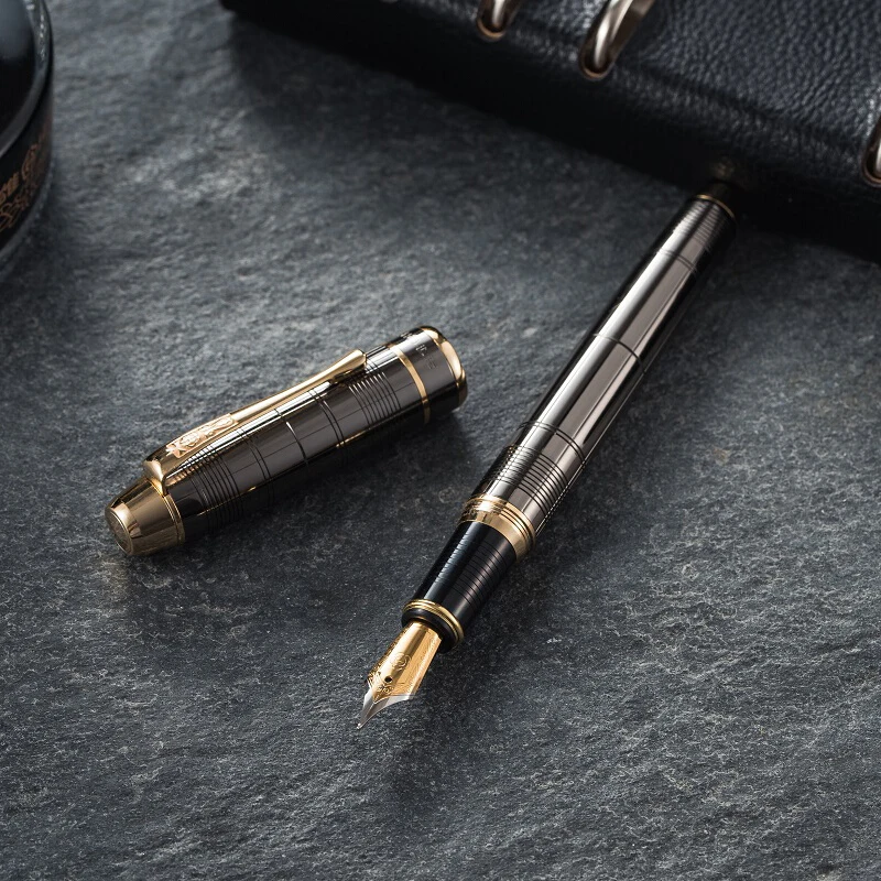 "Hero 953 Metal Fountain Pen Brushed Grey Grids Patterns Iraurita Fine 0.5mm Golden Clip Writing Ink Pen for Business Office Home" * Buy Now Just For 22$