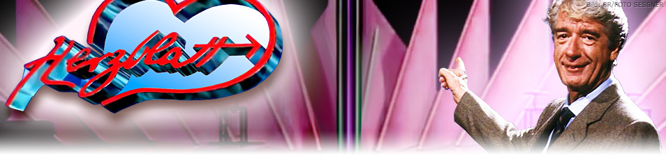 Anmerkungen . Bisher haben von 926 Herzblatt -Paaren zwei geheiratet .; Das Vorbild für Herzblatt war die US-amerikanische Show The Dating Game .; Prominente Kandidaten: Kai Pflaume, Walter Unterweger, Franziska Rubin, Volker Piesczek, Andreas Jancke, Michael Oenning . 1998 veröffentlichte die Band Norbert und die Feiglinge das Lied Herzblatt -Hubschrauber, in dem die angebliche Partnersuche in . . .
