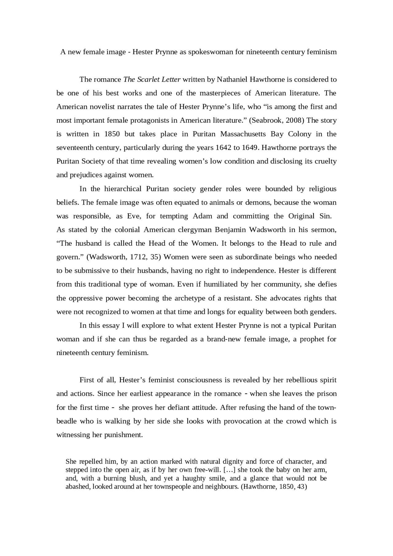 Hester Prynne Essay | Bartleby