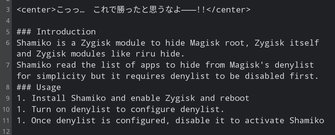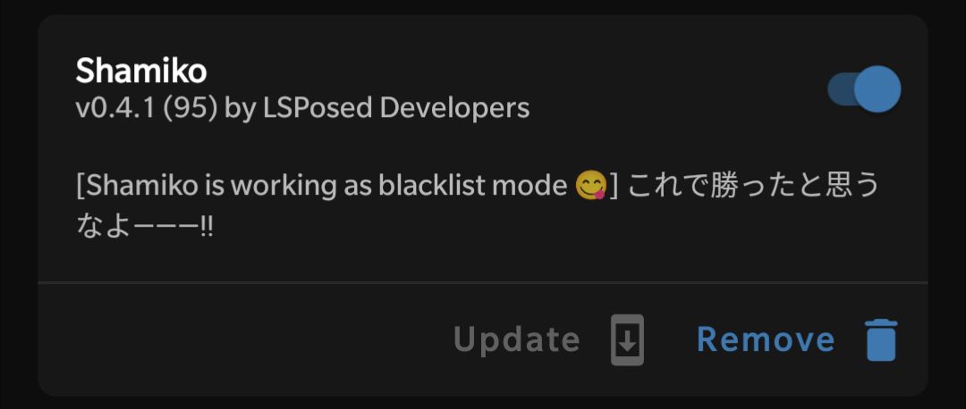 #hideroot masih menggunakan enforce denylist, yang mana ini bisa digunakan untuk menyembunyikan root untuk app tertentu. Akan tetapi, dia tidak bisa menyembunyikan dirinya sendiri. Karena magisk sekarang bisa berjalan di zygote (disebut zygisk), maka magisk masih bisa dideteksi. Fungsi dari modul shamiko ini adalah untuk menyembunyikan si zygisk ini. Modul ini juga sudah mengatasi hide untuk Google Play Services jadi tidak perlu centang lagi google play services di denylist.