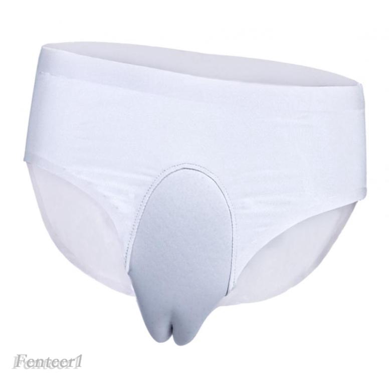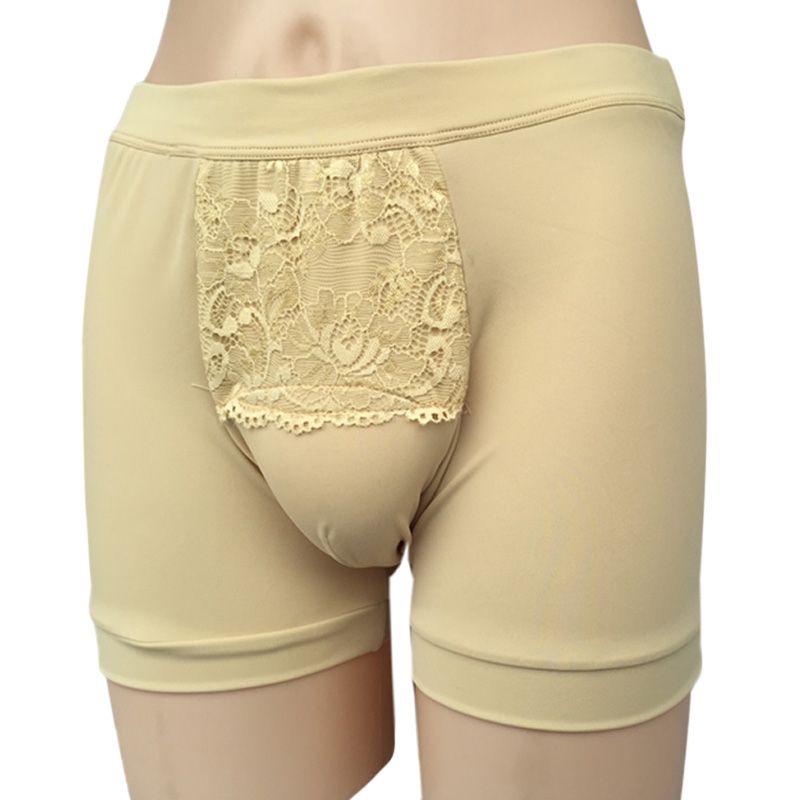 But, whatever, the best way to hide your manhood is to wear baggy loose-fitting jeans . I would also suggest you wear standard style boxers or your basic "tighty-whitey" briefs . Anything else undies-wise will no doubt be designed to accentuate the "male profile" β¦aka bulge .