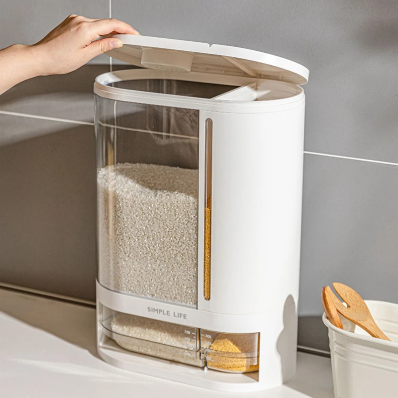 XsEmwqXxHere you can buy High Appearance Level Rice Barrel Margin Visible Rice Dispenser Press Meters Jars for Cereals Grid Design Grain Storage Barrel with free delivery to your post office.