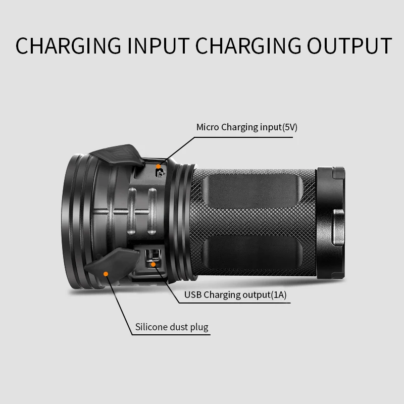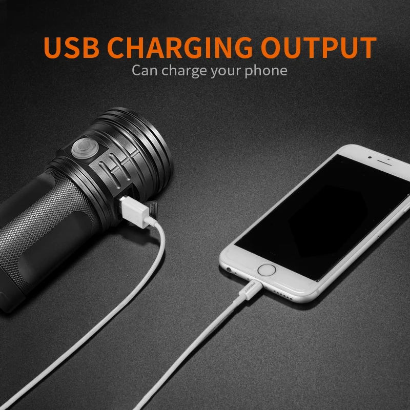 KTkkOiDxUHere you can buy High Bright T6 LED Torch Flashlight 500M Outdoor Hunting Light IP65 Portable Night Searchlight USB Rechargeable As Power Bank with free delivery to your post office.