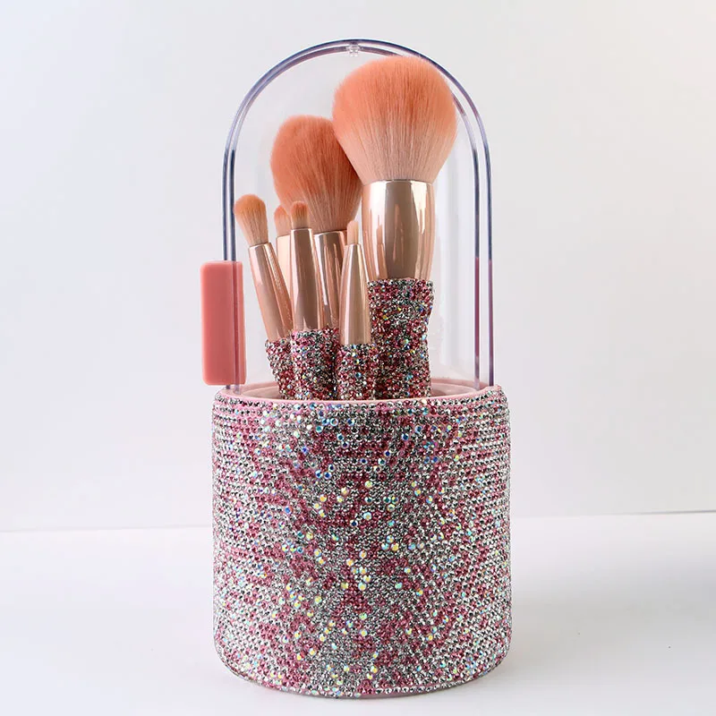 High-End Full Diamond Dust-Proof Waterproof Makeup Brush Set with Cover Eye Shadow Brush Powder Brush Storage Bucket Storage Box - Купить с бесплатной доставкой