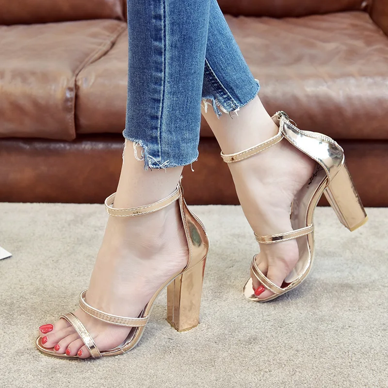 Босоножки женские на высоком каблуке, перфорированные сандалии с молнией сзади, повседневная обувь с перфорацией, большие размеры, красные