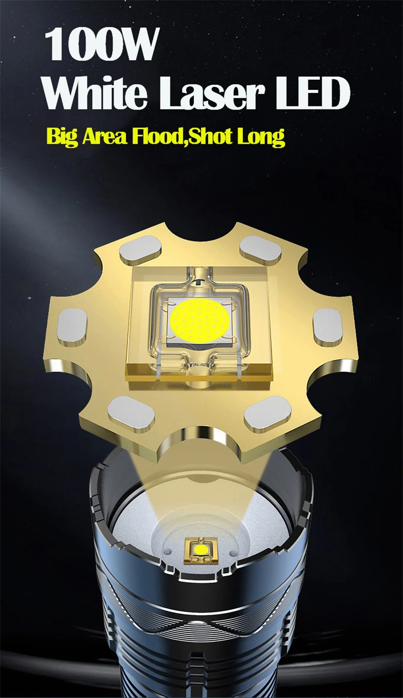 ngILTUTxaHere you can buy High Power 100W M77 LED Flashlight Super Bright Spotlight Long Range Zoomable Emergency Torch Outdoor Flashlight Power Display with free delivery to your post office.