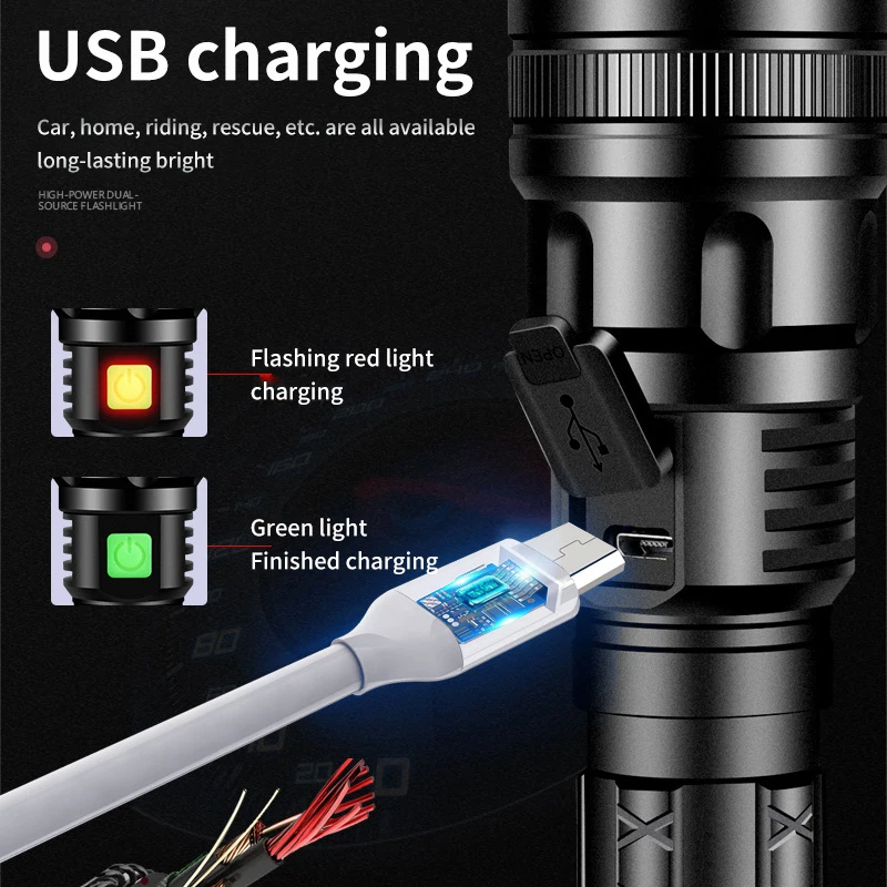 ZTxJLYFinxHere you can buy High Power LED Flashlight USB Rechargeable Torch Zoom Most Powerful Flashlight Hunting Lantern for Camping Outdoor Emergency Use with free delivery to your post office.