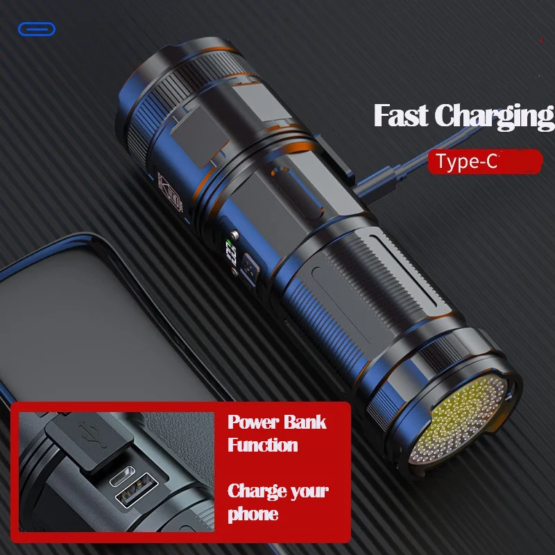 AeUPJRxsGuHere you can buy High Power Long Range LED Flashlight With Display COB Tail Light lantern Built-in battery Type-C Rechargeable Torch for Fishing with free delivery to your post office.