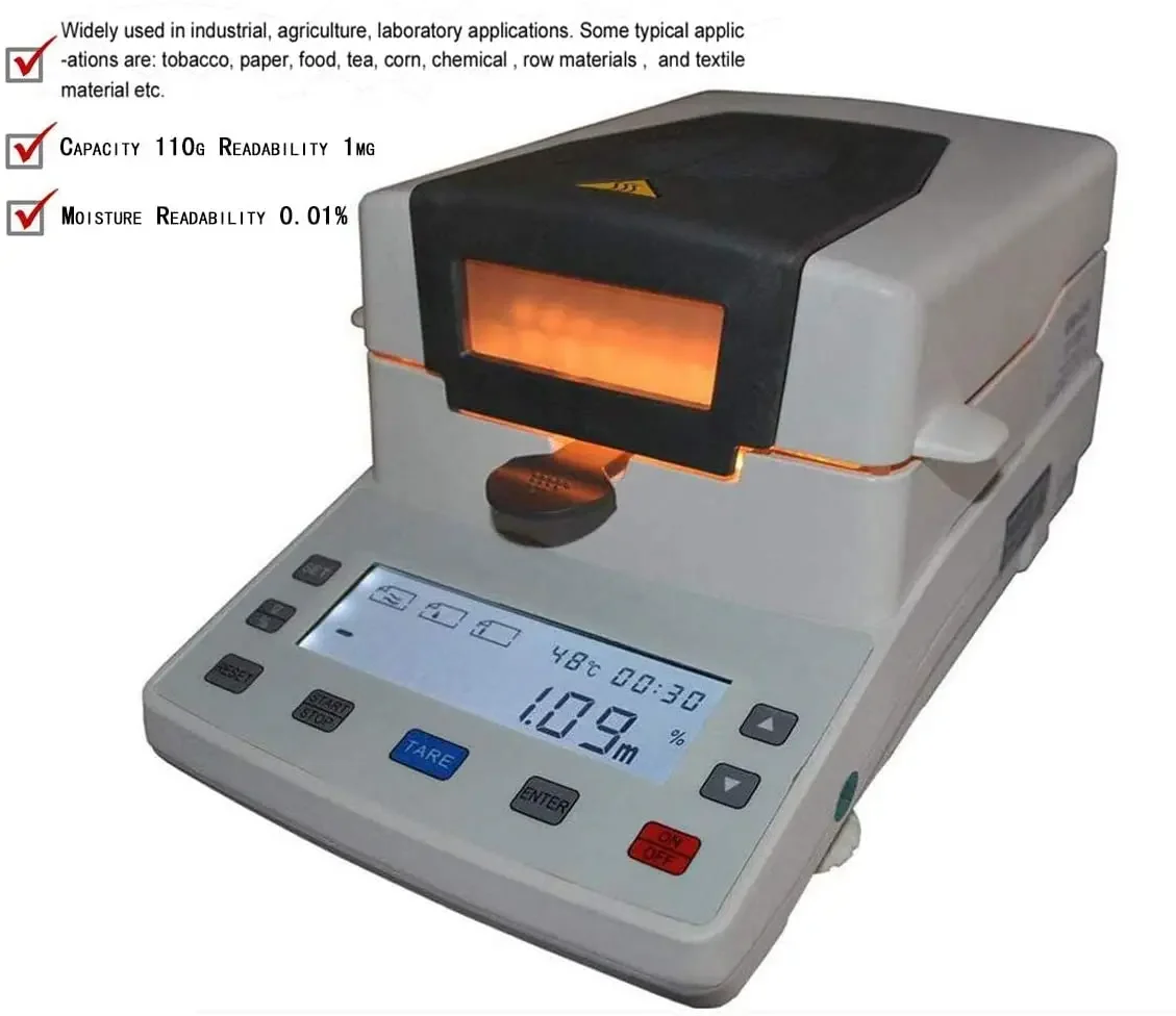 bDliAGWKRzHere you can buy High Precision Halogen Moisture Analyzer Tester with Capacity 110g Readability 1mg with free delivery to your post office.