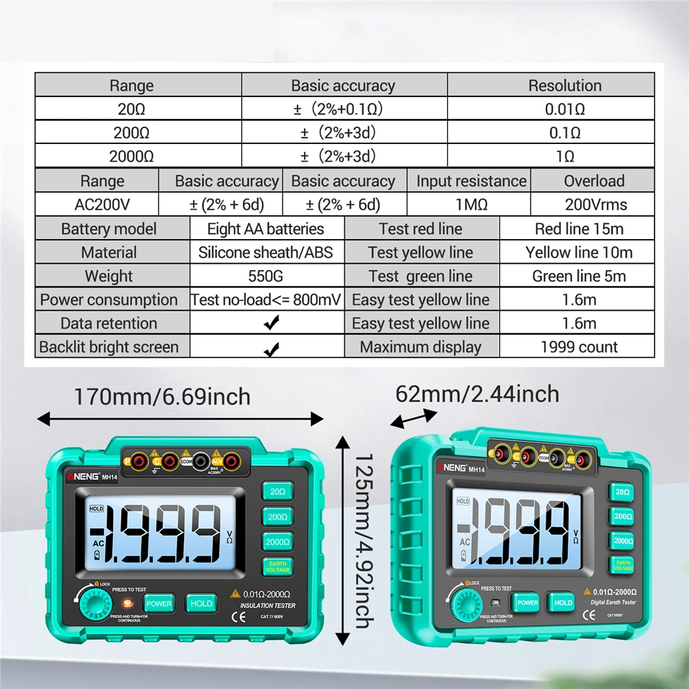 vZSVDiTgTЗдесь вы сможете купить High Precision MH14 LCD Digital Insulation Resistance Tester Auto Ranges Megohmmeter 0-2000Ohm 1999 Count Voltmeter Ohm Detector с бесплатной доставкой до вашего почтового отделения.