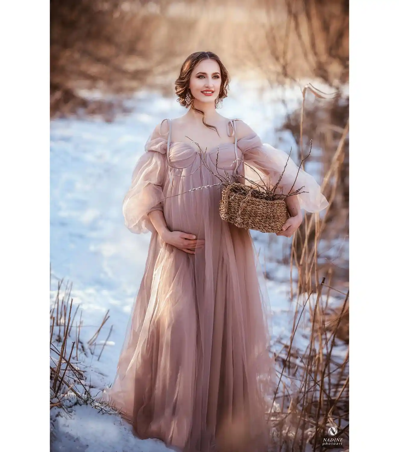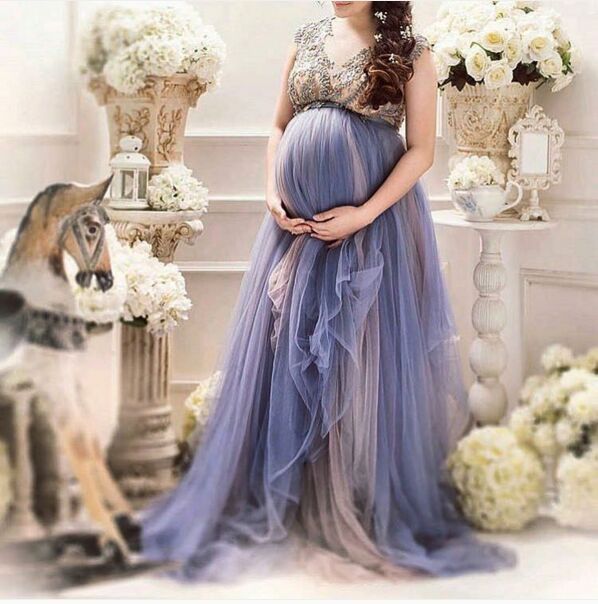 High Quality Beautiful Tulle Maternity Robe For Photo Shoot Custom Made Women Ruffled Tulle Maternity Dresses Maternity Gown