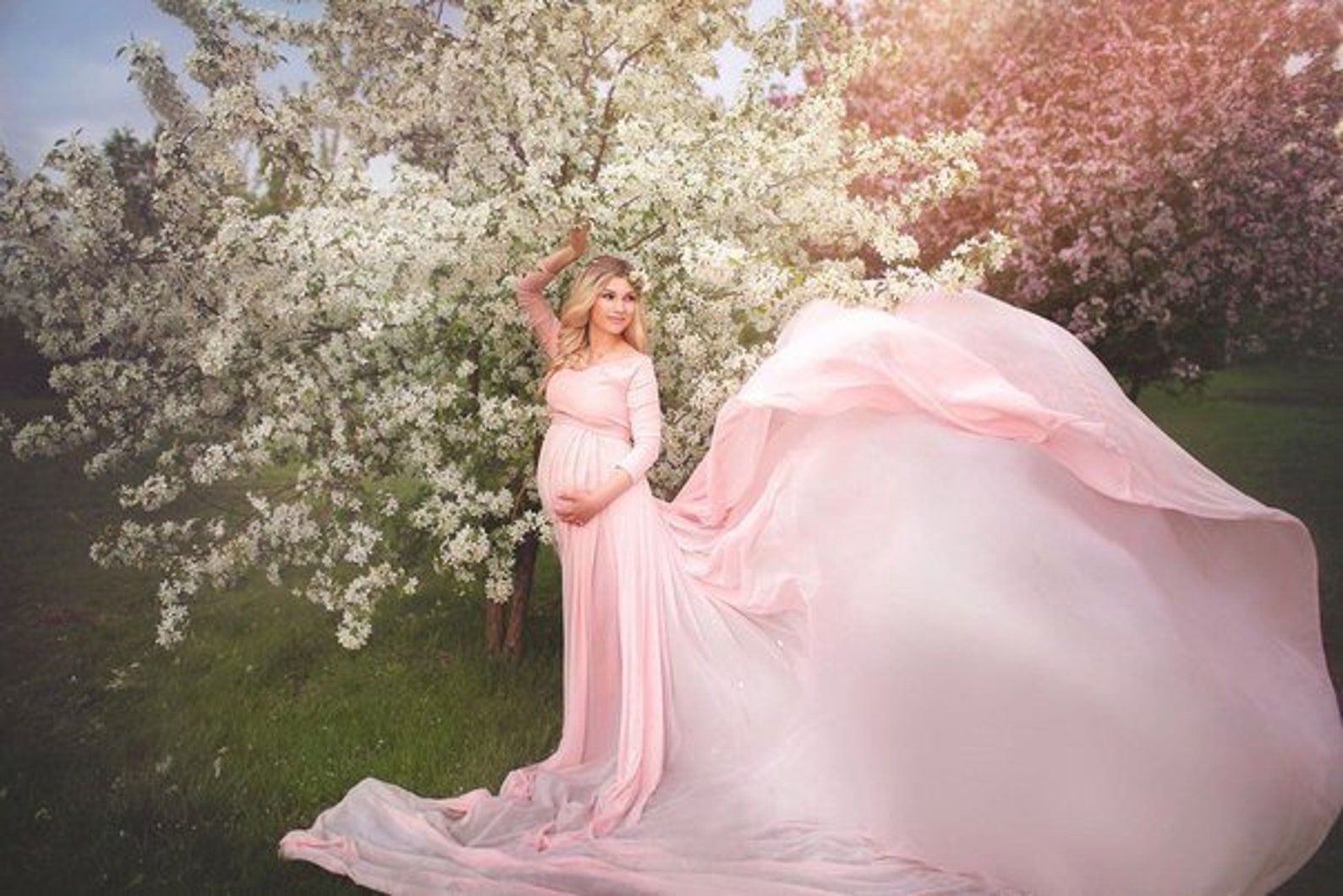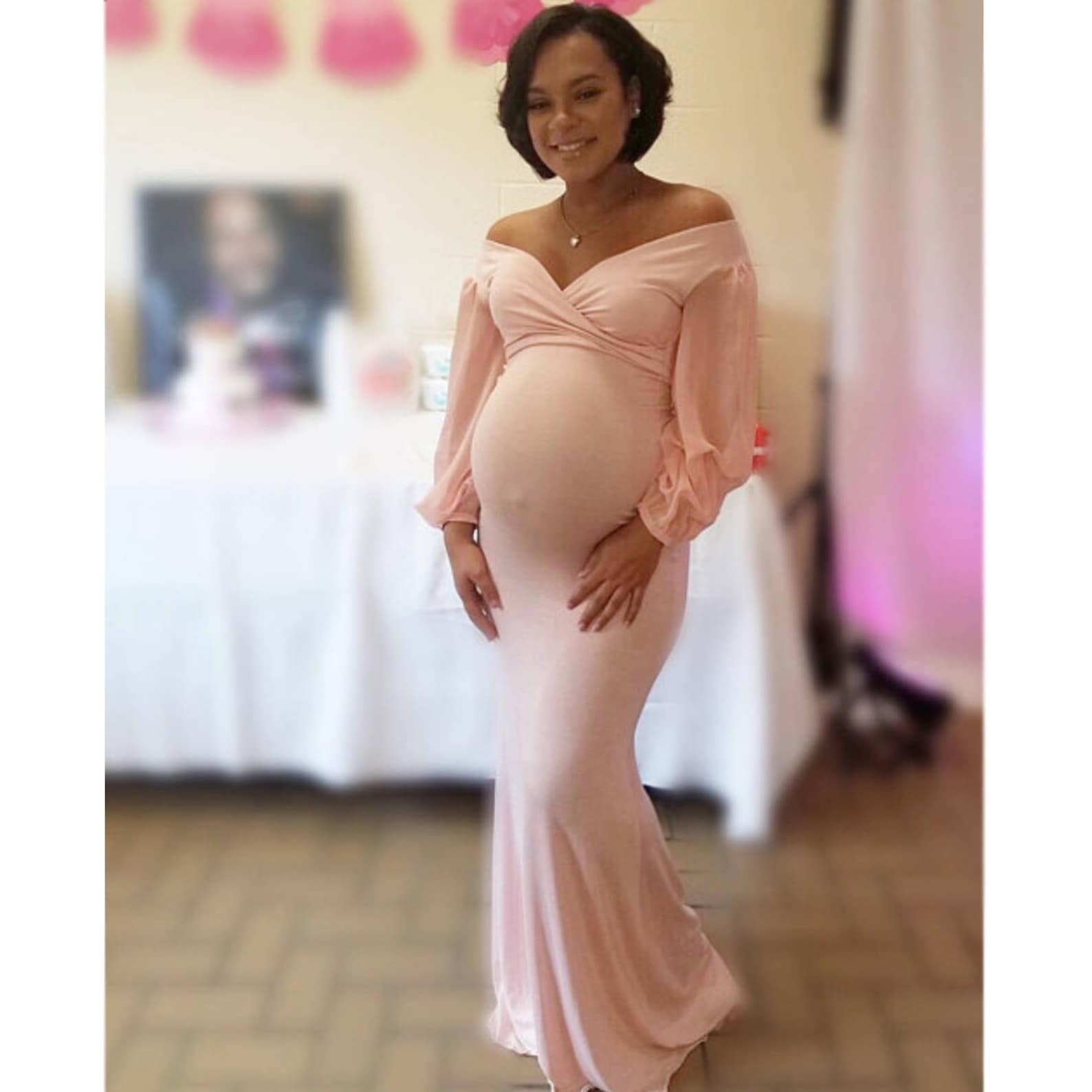 Flare Sleeve Maternity Photography Lace Dress Baby Shower Party Maxi Gown Flare Sleeve Pregnant Women Pregnancy Photo Shoot Prop