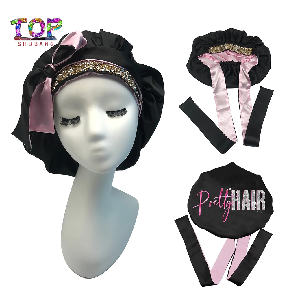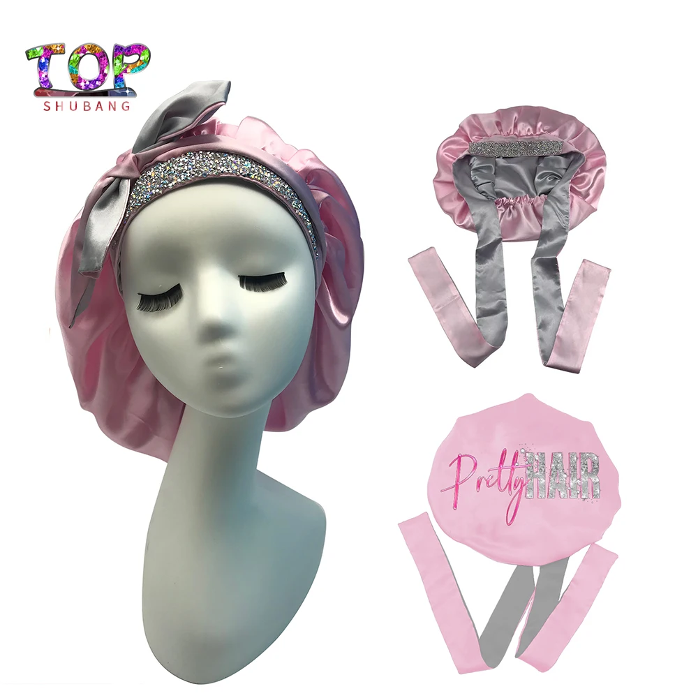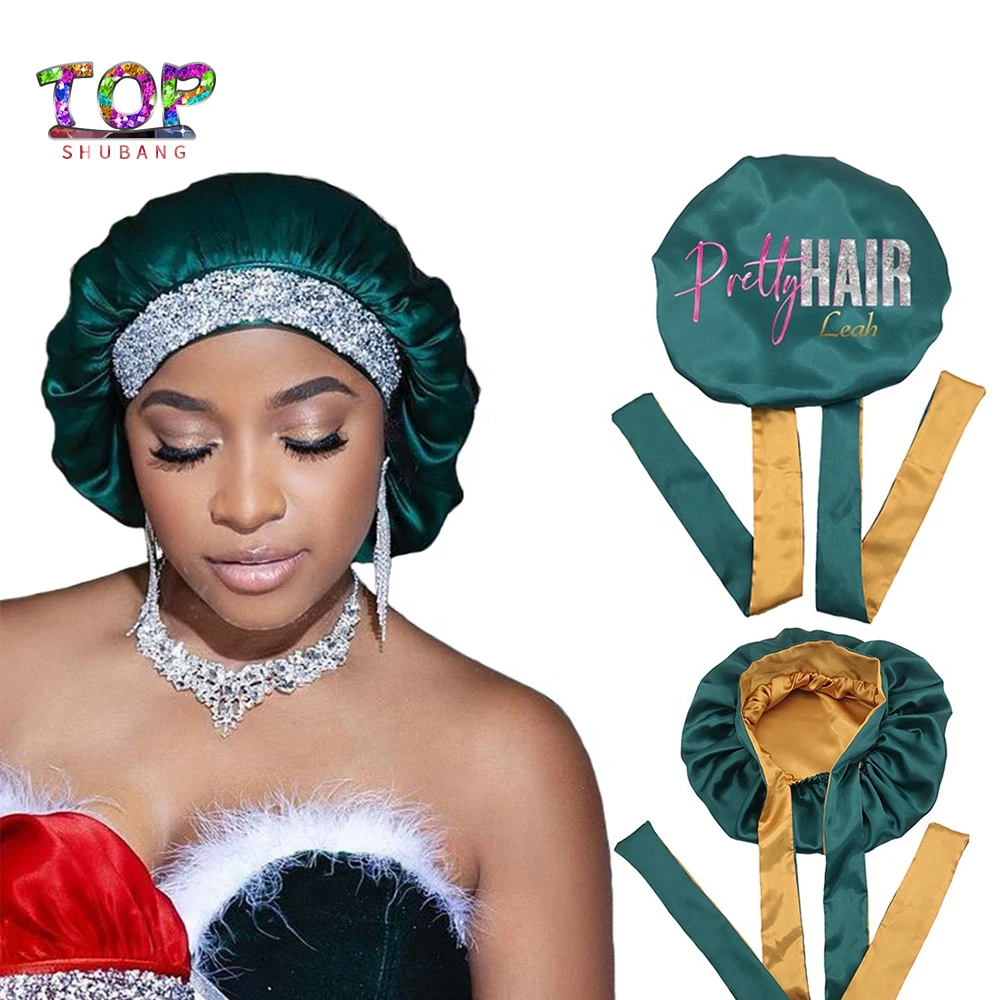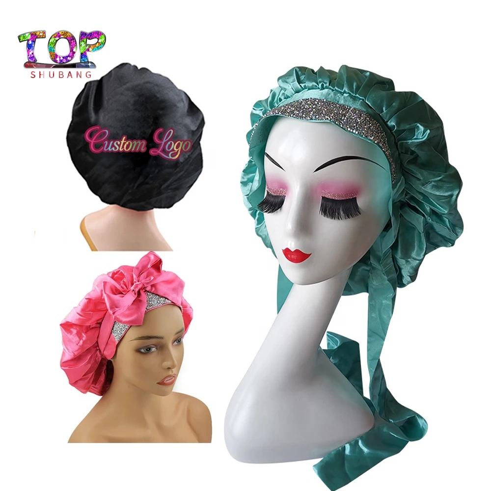 VzpfckBOHere you can buy High Quality Custom Logo Adjustable Straps Hair Head Wrap Large Size Double Layer Silk Stain Sleeping Bonnets With Rhinestones with free delivery to your post office.