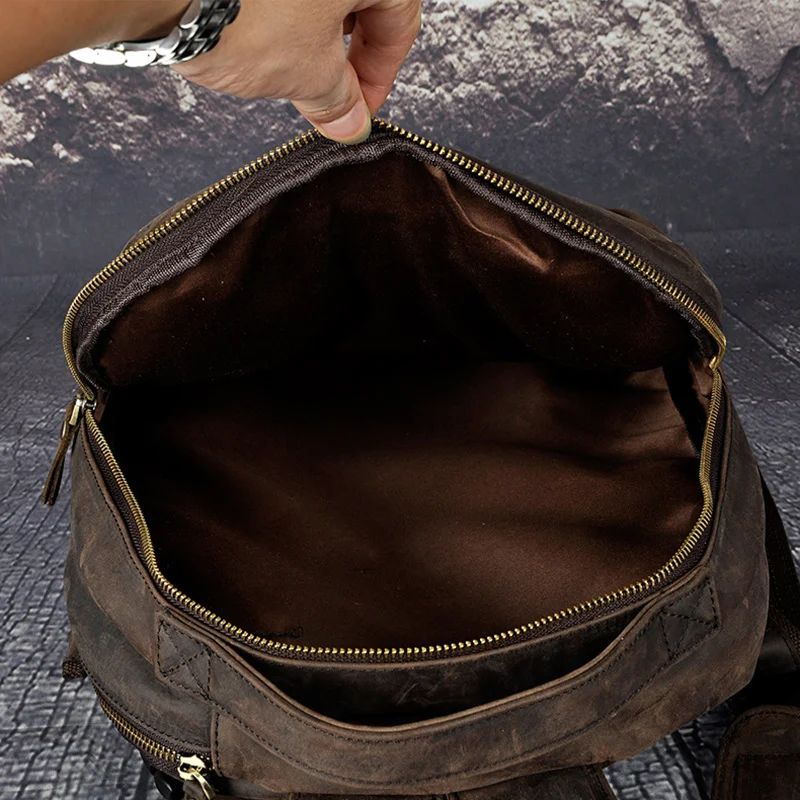 High Quality Genuine Leather Rucksack Daypack Men School Bag Computer Bags Multi-Capacity Crazy Horse Cowhide Knapsack Backpack - Купить с бесплатной доставкой