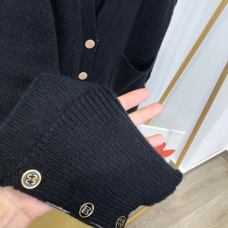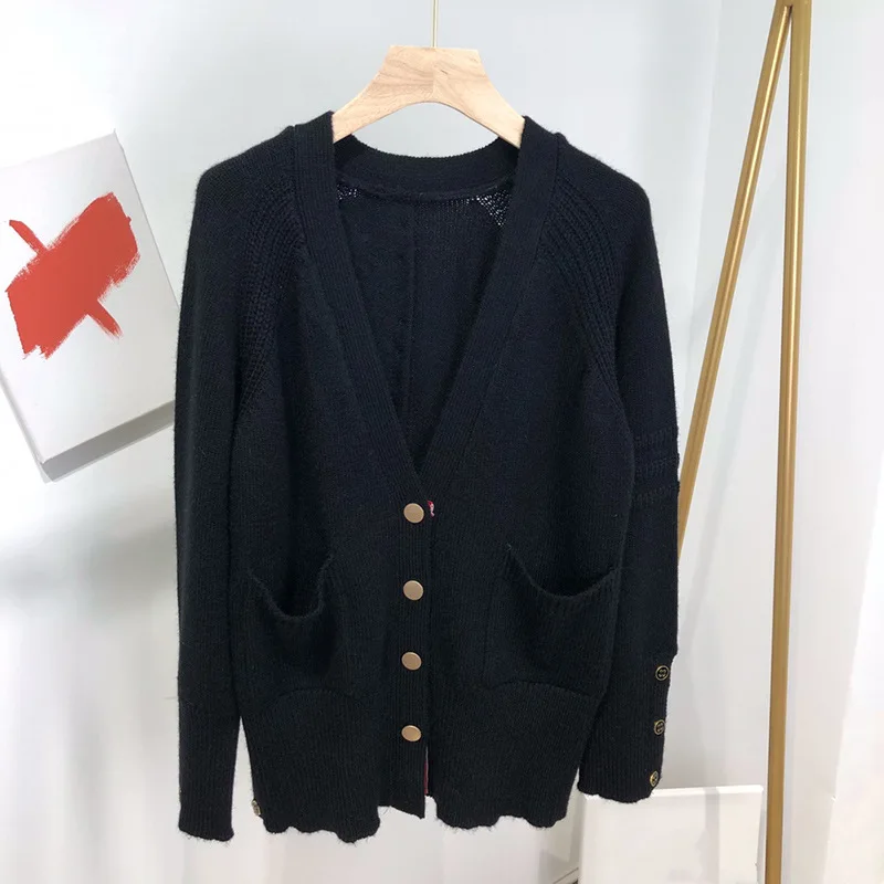 TB Four bar Mink Velvet Padded Knitted Cardigan Female V neck Gold Buckle Loose Lazy Wind Leisure Long Sleeve Coat Buy Now With 05 09