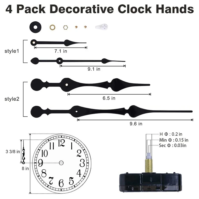 High Torque Clock Movement Mechanism with 11 Inch Long Spade Hands, Quartz Clock Motor Kit , Total Shaft Length 7/8 Inch - Купить с бесплатной доставкой