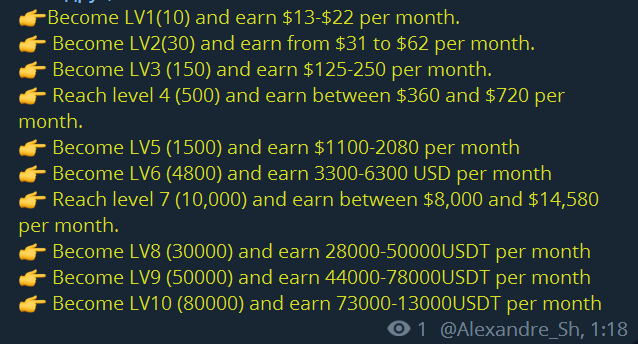 Alexandre Welcome to this page. I confirm, I am hiring active and ambitious job seekers! ✳✳ Citizenship, nationality, age, gender - it doesn't matter! ✳✳ Only your Internet activity is required! ✳✳ The remuneration for work is directly dependent on your ambitions and opportunities! ✳✳ Interview in Telegram, after receiving your message to my mail: shkryabi@gmail.com with your Telegram login and marked in the subject line - "Work". ✳✳ Attached above is a table of earnings depending on your level! ✳✳ Levels are easy and really possible to increase!Приветствую гостей этой странички. ✳✳ Подтверждаю, принимаю на работу, активных и амбициозных соискателей! ✳✳ Гражданство, национальность, возраст, пол - значения не имеют! ✳✳ Требуется только Ваша интернет-активность! ✳✳ Вознаграждение за работу находится в прямой зависимости от Ваших амбиций и возможностей! ✳✳Собеседование в Telegram, после получения на мой майл: shkryabi@gmail.com Вашего сообщения с вашим логином Telegram и с пометкой в теме письма - "Работа". ✳✳ Выше прилагаю таблицу заработка в зависимости от Вашего уровня! ✳✳ Уровни легко и реально можно повышать!