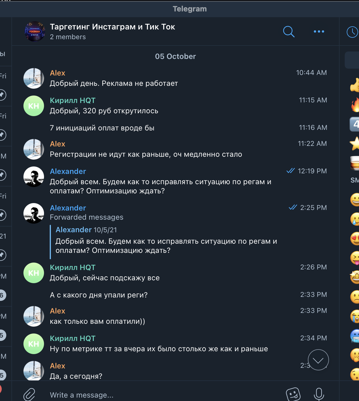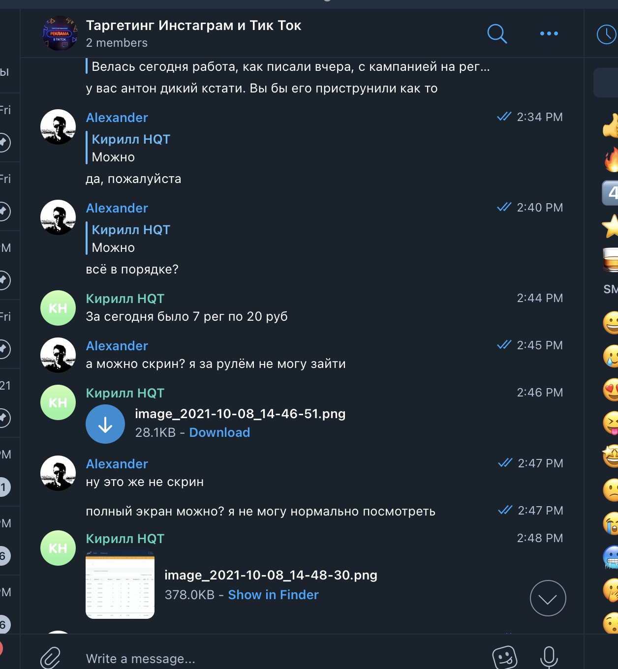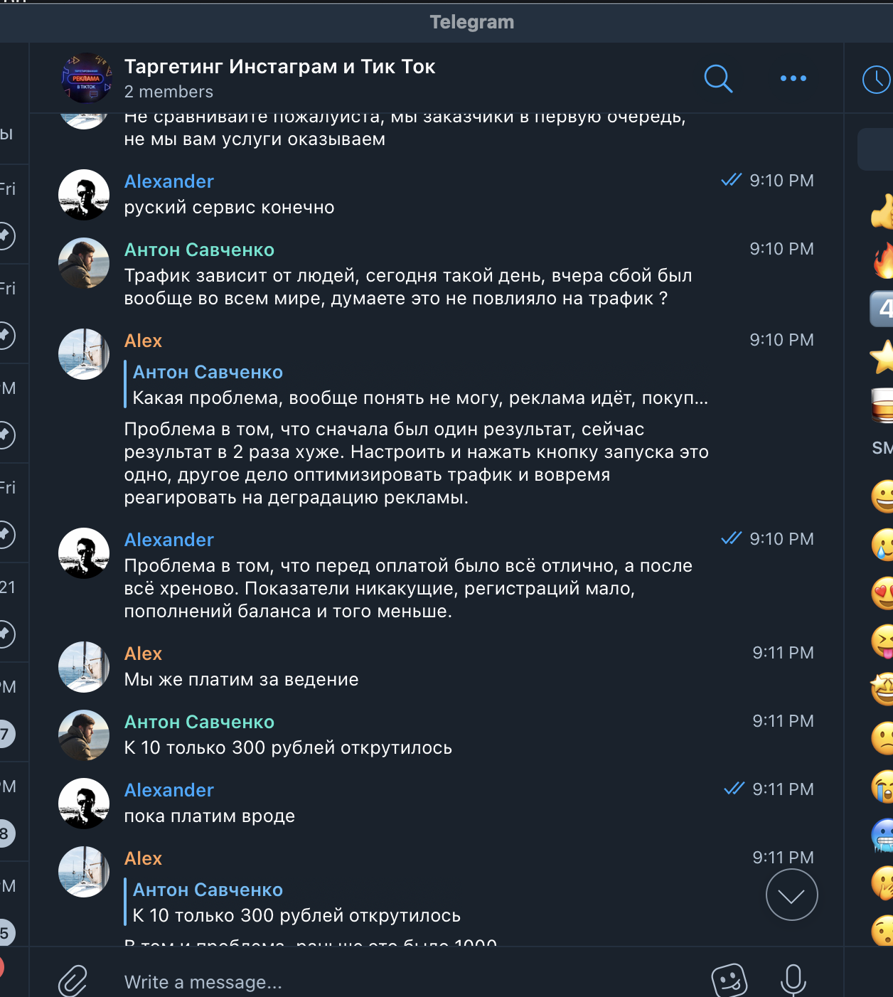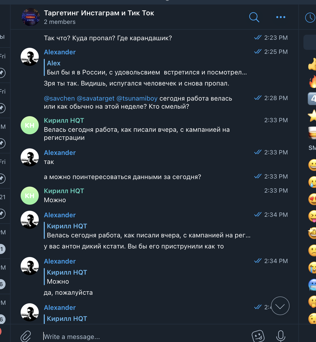 Мы создали общий чат в Телеграме, договорились на звонок, и в скором времени его провели. Посколько мы сами работаем в сфере SMM, мы сразу обозначили свой интерес – нам надо и для себя, и для наших клиентов, если это эффективно. Понравилось ещё и то, что они не просили предоплату и предоставляли первую неделю работы на тест. Впрочем, это условие пришлось выбить, но главное же итог, не так ли?