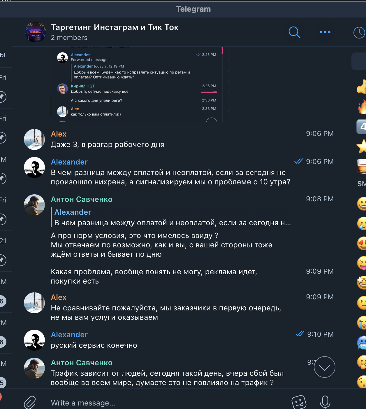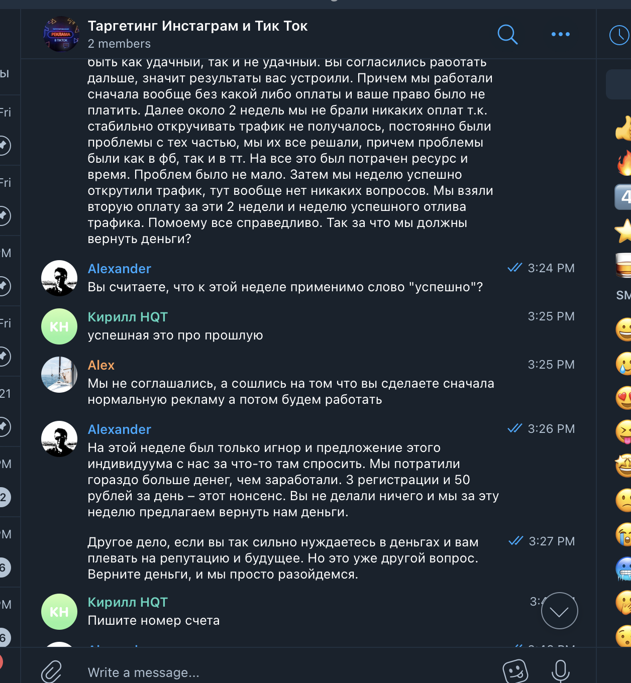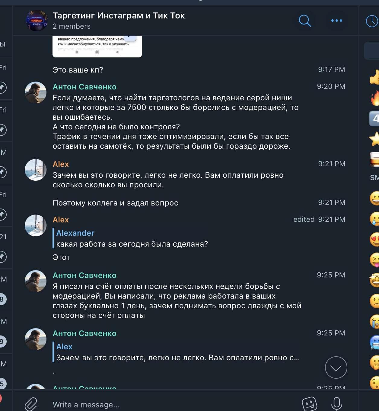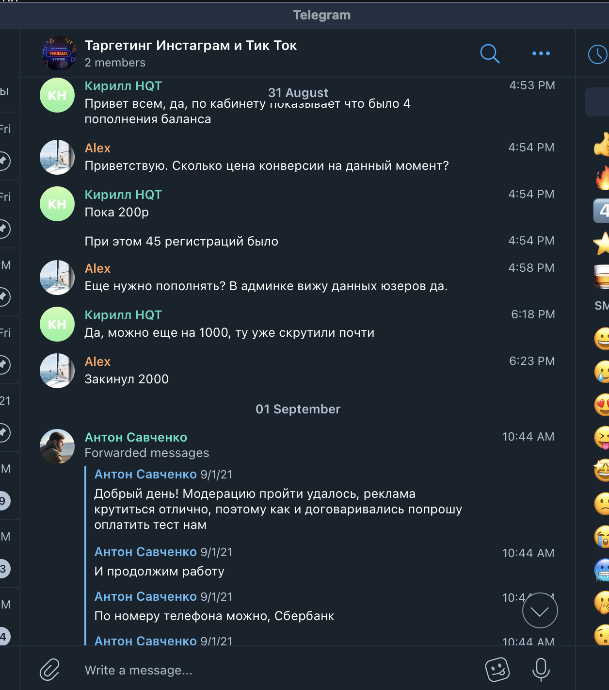 История про мошенников, выдающих себя за ТикТок рекламщиков. В вышеупомянутом чате мы наткнулись на рекламный пост НQT|Антон. У нас действующий и быстро растущий проект и мы уже давно думали нанять спеца по рекламе в Тик Ток. НQT|Антон оказался нормальным человеком, он слышал клиента и говорил правильные вещи, убеждая в том, что мы вроде нашли специалиста.