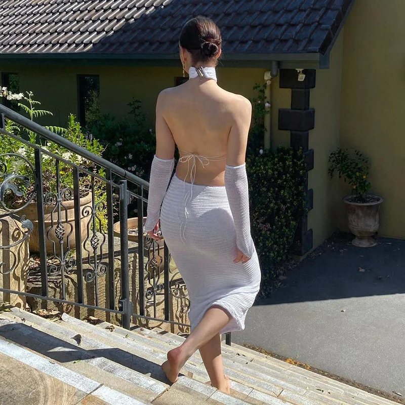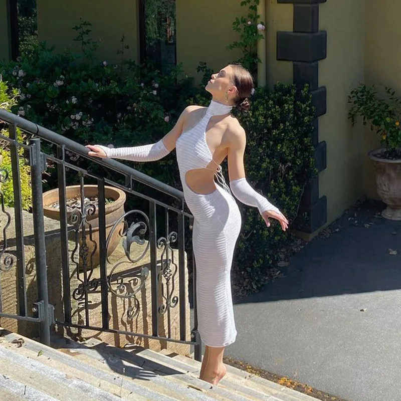 «Highdays 2022 Spring Summer Sexy Solid Halter Backless Long Dress Lace Skinny Elastic Force Women Clothes Female Club Outfits» по лучшей цене на рынке! Всего за 17$ (1615рублей)