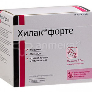 Хилак форте: способ применения и дозы . Препарат назначают внутрь до или во время приема пищи трижды в день . Капли Хилак форте разводят в незначительном объеме жидкости . Дозировка . . .