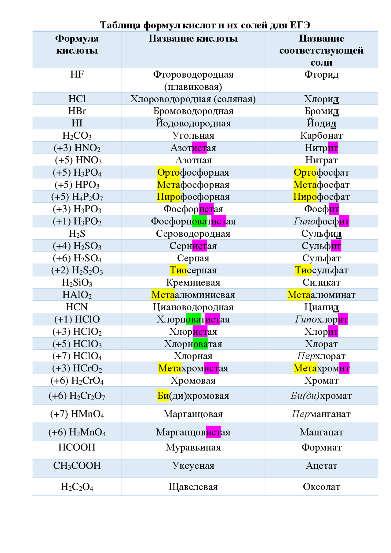 Хим формула кислот