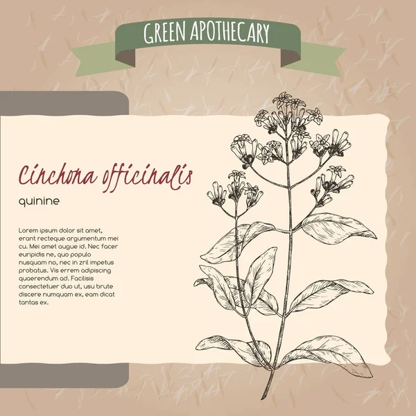 Хина Кора вида Cinchona officinalis В качестве лекарственного сырья используют высушенную кору стволов, ветвей и корней ( лат . Cortex Chinae ), основные действующие вещества которой — алкалоиды, производные хинолина, в том числе хинин и его стереоизомер хинидин и их 6-диметоксипроизводные — цинхонин и цинхонидин .