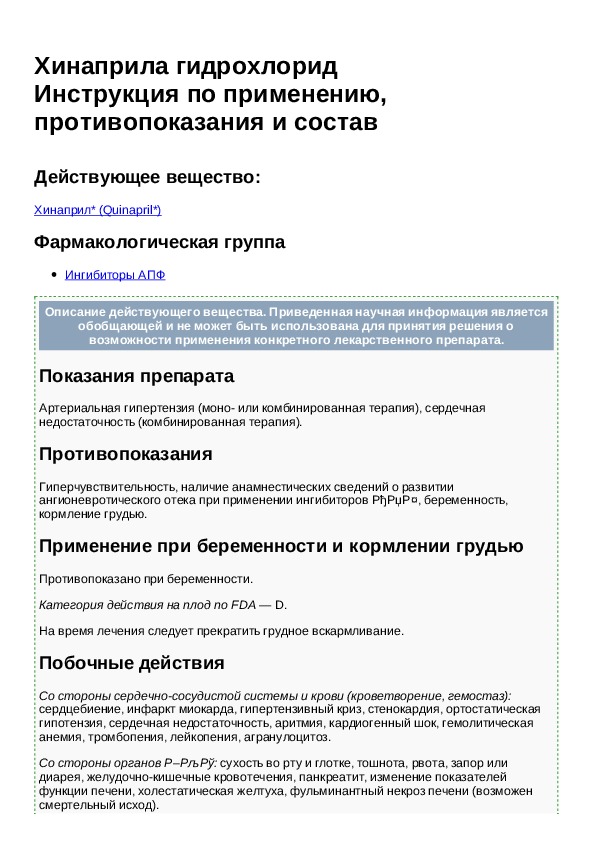 Хинаприл Отзывы