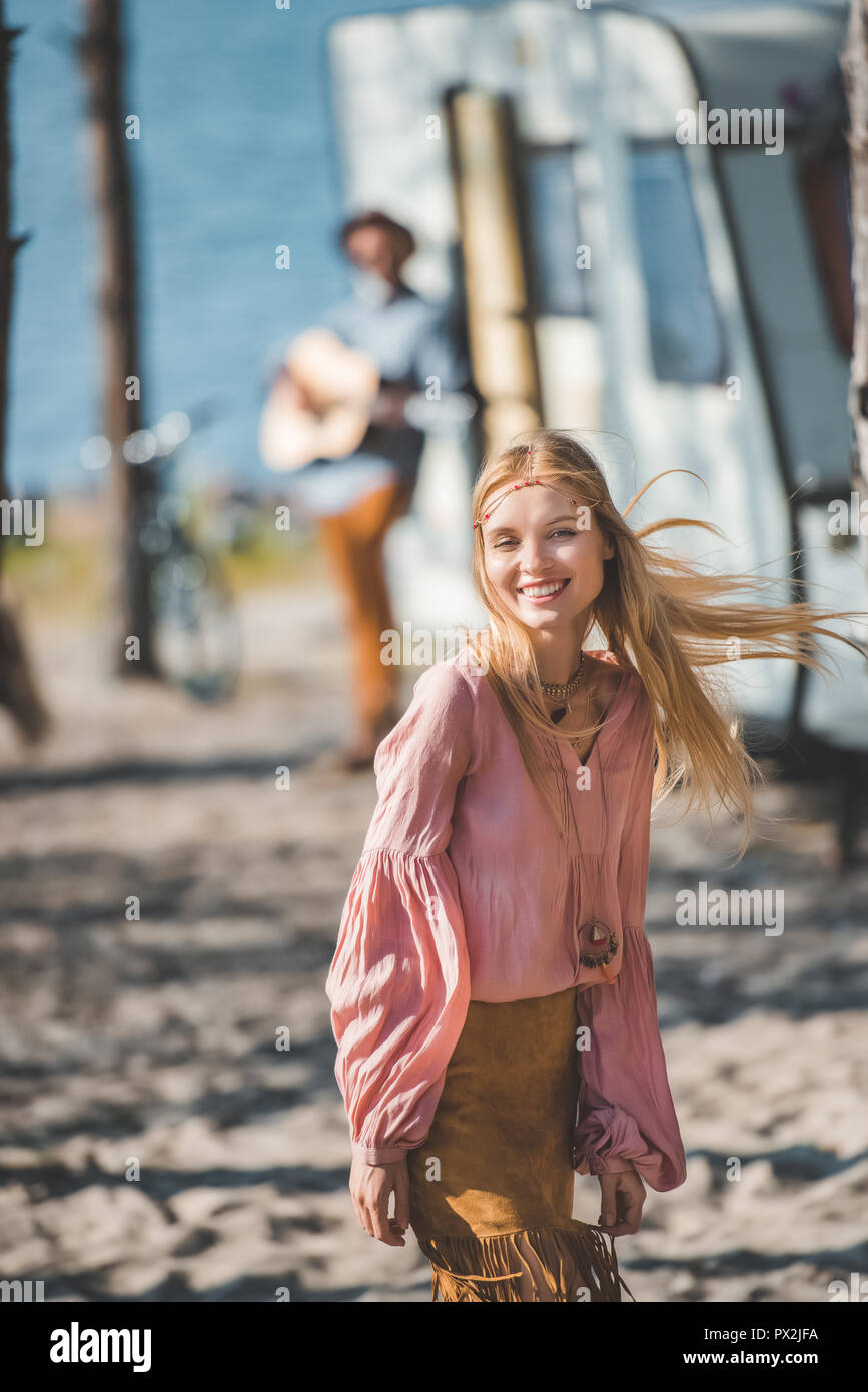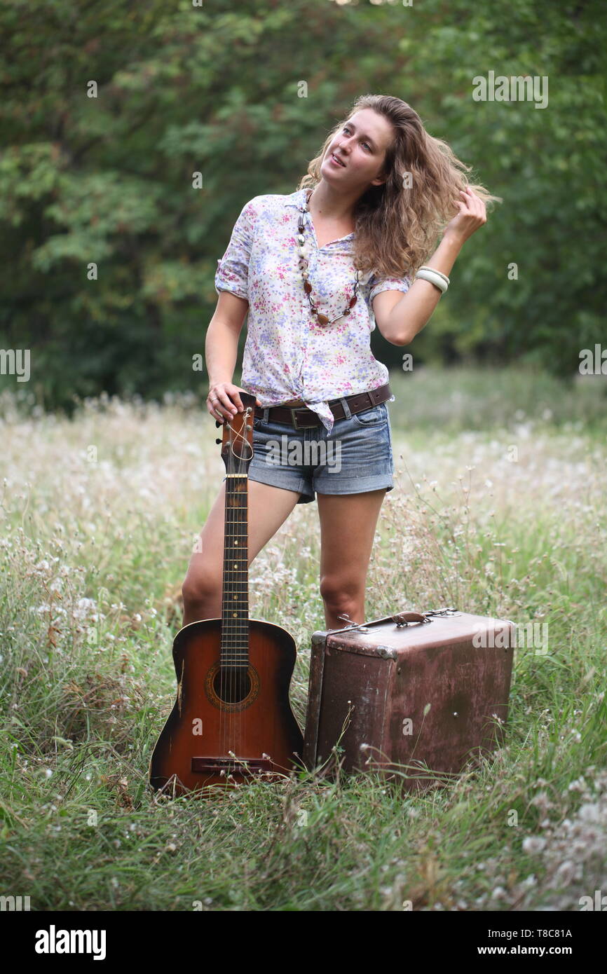 Hippie chick gets high while
