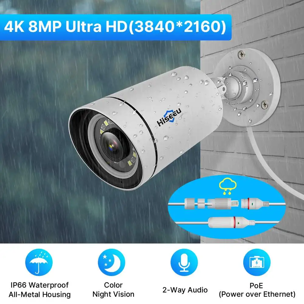 SKjweiYtJHere you can buy Hiseeu 4K UHD 4CH 8MP PoE Security Camera Kit Color Night Vision Two-way Audio Humanoid Detection Remote APP Viewing Outdoors IP with free delivery to your post office.