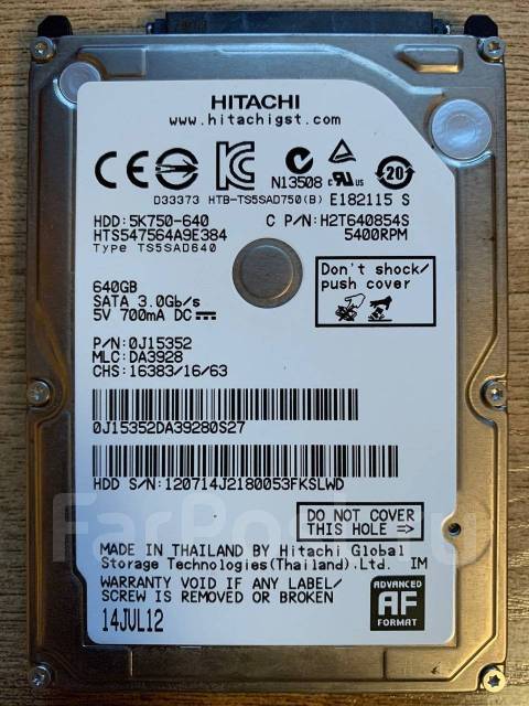Hitachi 5K750 -640 - 640GB 5 .4K RPM SATA 2 .5" Hard Drive . Hitachi . Item#: 5K750 -640 Condition: Refurbished . On Sale $49 .00 . SAVE 45% Retail $89 .00 .