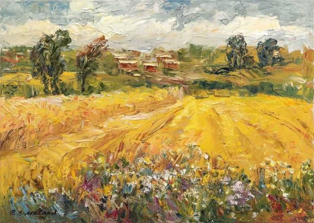 Рисование гуашью «Колоски зернистые, поле золотистое» в . . .