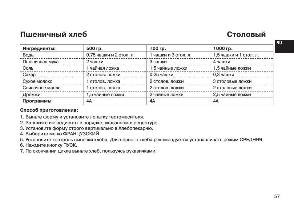 Хлебопечь lg рецепт