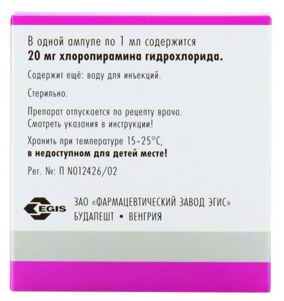 Хлоропирамин (20 мг/мл): инструкция по применению, показания . (Другие названия . . .