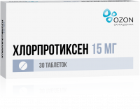 Таблетки Хлорпротиксен Зентива расфасованы в контурной ячейковой упаковке по 10 штук . Картонная пачка может содержать 3 (30 таблеток) и 5 (50 таблеток) контурных ячейковых упаковок, а также инструкцию к лекарственному средству . Фармакологическое действие При применении Хлорпротиксена Зентива на организм производится антипсихотическое воздействие .