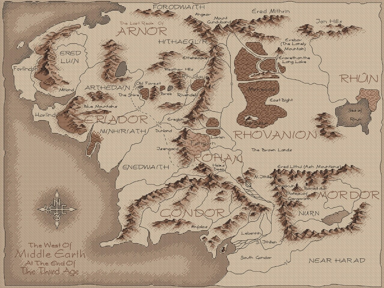 Но вернемся к вышивке, хочу начать с карты Средиземья от Екатерины Мешковой.