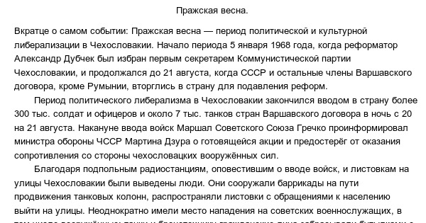 Ход событий пражской весны