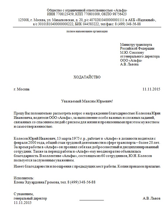 Ходатайство о предоставлении экспертов