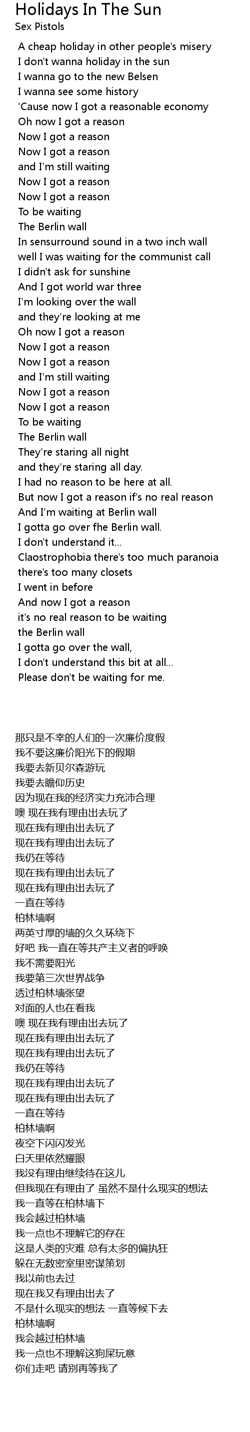Holiday In The Sun Sex Pistols Lyrics
