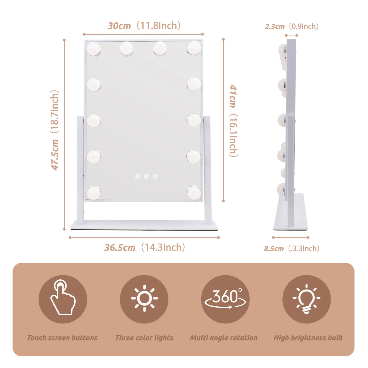 dQzucQgeHere you can buy Hollywood Vanity Makeup Mirror with Lights 12 Dimmable Bulbs LED Lighted 360°Rotation 3 Color Mode Smart Touch Control with free delivery to your post office.