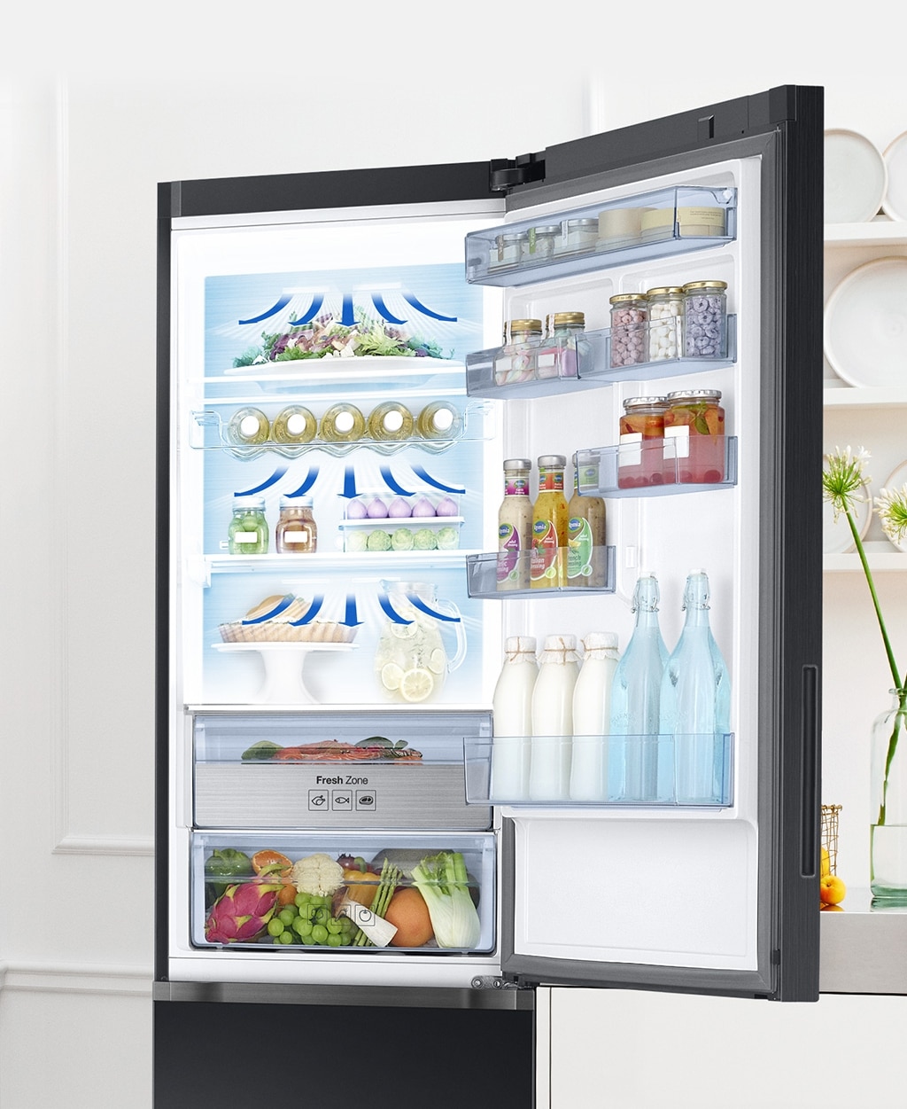 Черное глянцевое стекло . Внешний вид холодильника Samsung RB37K63402C UA, купить в Украине который выгодней в Comfy, соответствует самым изысканным предметам интерьера и сможет стать роскошным . . .