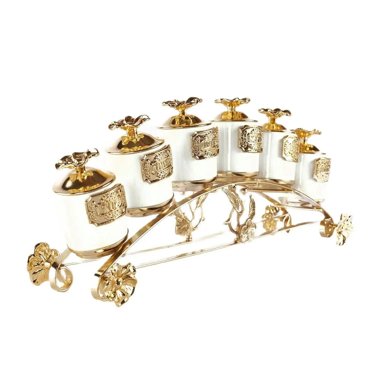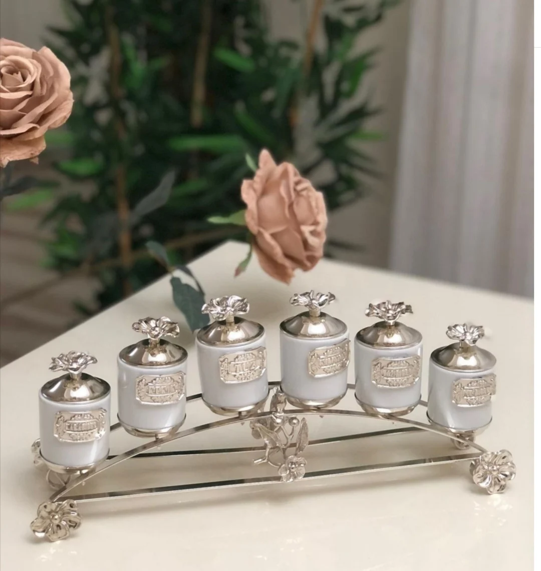 Home Appliance Spice Set 6 Pieces Metal Gold And Silver Color Option Stand Japanese Rose Model Durable Porcelain Containers Original Design Kitchen Accessory Food Presentation Gift Covered Salt Pepper Thyme Cumin - Купить с бесплатной доставкой