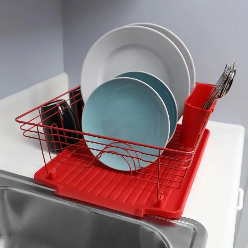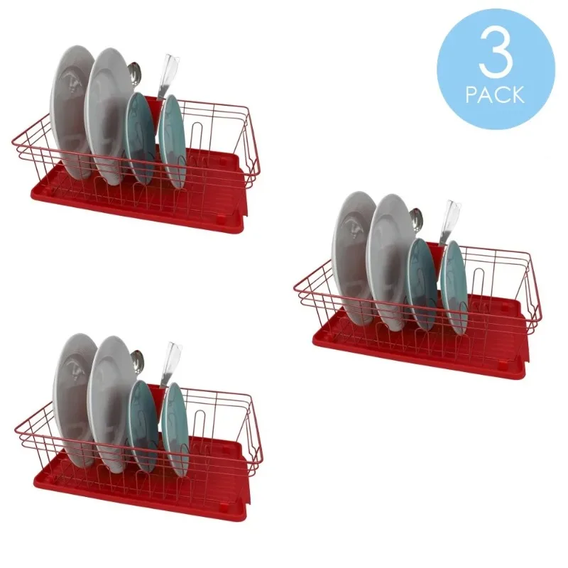 Home Basics Contempo 3 Piece Dish Rack, Red Cuisine Outils Accessoires Kitchen Storage Organizer Plate Rack - Купить с бесплатной доставкой